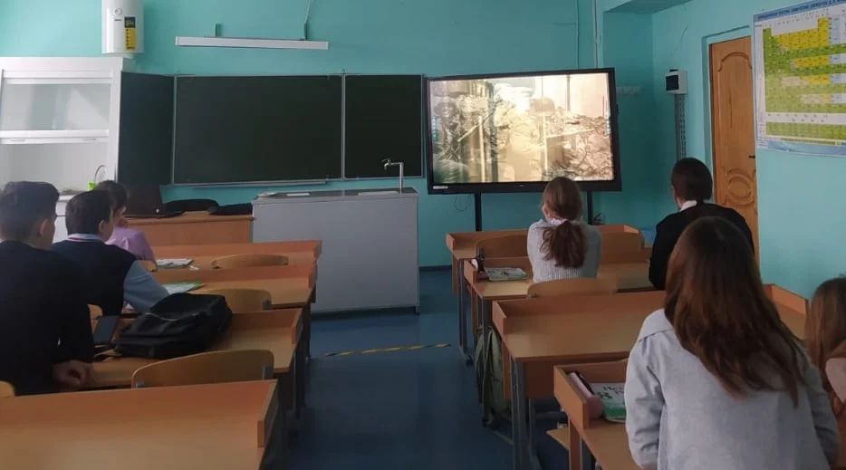 В рамках республиканской акции "Горячий снег Сталинграда" в школе прошли тематические классные часы и беседы с просмотром документальных фильмов.