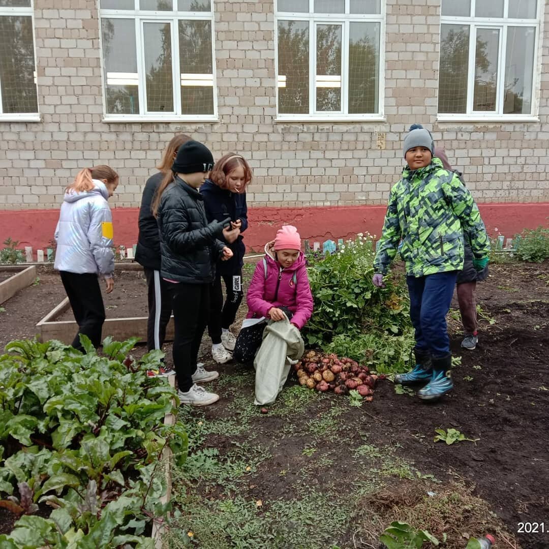 Уборка урожая на пришкольном участке.